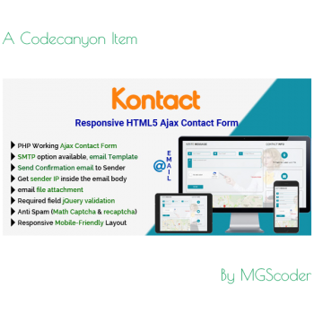 Kontact is a Full Responsive Ajax Contact Form with Required field jQuery validation built on HTML5/CSS3 and JQuery. Code written in a simple way by which you can easily integrated at your site.