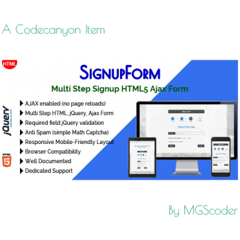 SignupForm is a Full Responsive Multi Step Signup HTML Form with Required field jQuery validation built on Bootstrap Framework, HTML5/CSS3 and jQuery. Code written in a simple way by which you can easily integrated at your site.