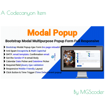 This Modal Popup Form will open Popup automaticaaly after specific trigger time, You can set your own trigger time. If you don't need to open Popup automaticaaly after specific trigger time just you will need to remove a class MGStimeTriggerModal from html coding and then only Button click event will work.