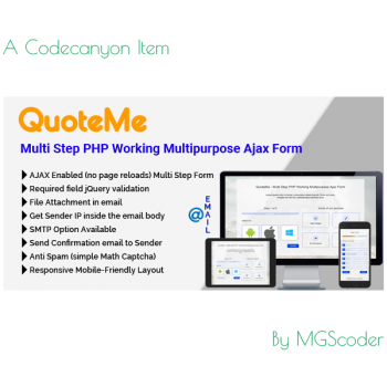QuoteMe is a Full Responsive Multi Step PHP Working Multipurpose Ajax Form with Required field jQuery validation built on PHP, HTML5/CSS3 and jQuery. Code written in a simple way by which you can easily integrated at your site.