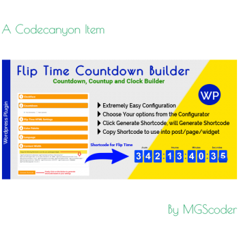 Flip Time Countdown Builder WordPress Plugin – display countdown, countup and clock in your website post/pages/widgets using Shortcode. It looks great with all types of devices. Try out the demo.