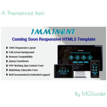 Imminent has Different styles Coming Soon Pages with fully responsive design. Indeed, you will be able to showcase your Coming Soon Page on mobile devices such as smart phones and tablets. All the codes are clean and well organized. Also have proper help documentation too. It looks great with all types of devices. Try out the demo.